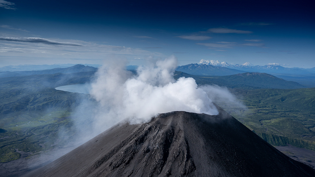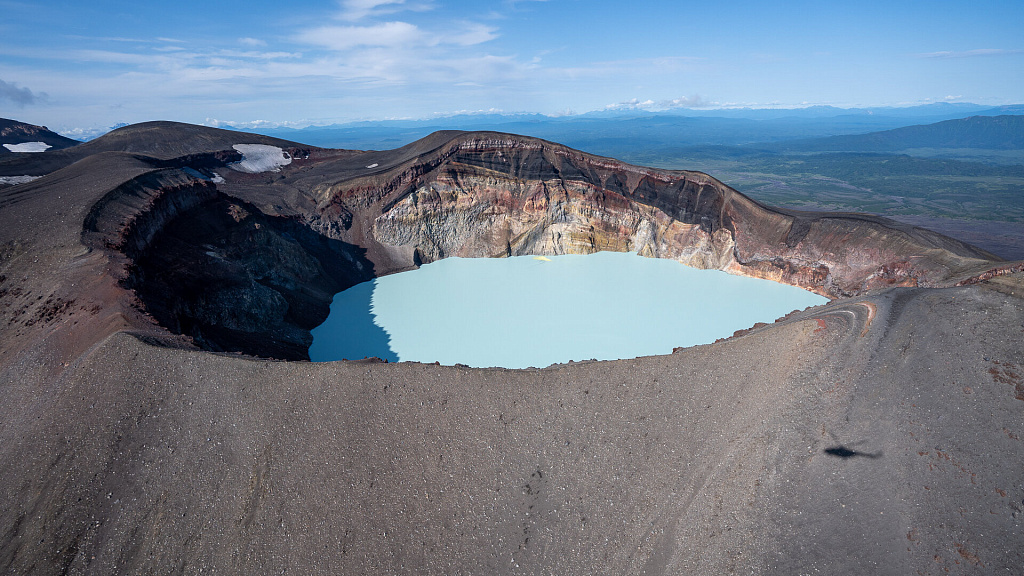 Малый Семячик — вулкан, кратер которого заполнен кислотным озером. По его поверхности плавает ярко-жёлтая сера. Пролетая над кратером, вертолёт тенью отражается на поверхности кратерного озера. Он кажется невероятно маленьким, по сравнению с огромным вулканом.