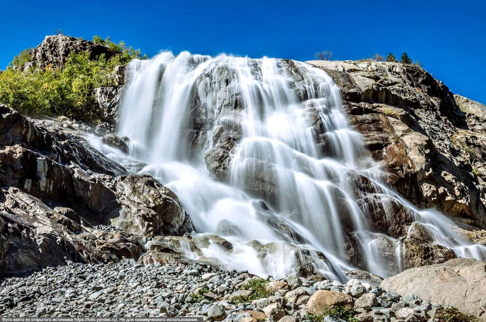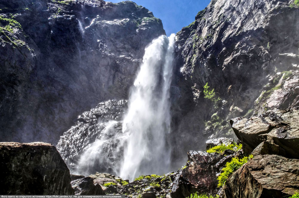 Поскольку зной уже успел овладеть горным краем, путешествие на Домбай летом – время активного таяния ледников. Такие наледи, как Алибек, в июле временно ослабляют оковы и отдают свои древние ручьи домбайским водопадам – в это время они особенно полноводны и бурливы.