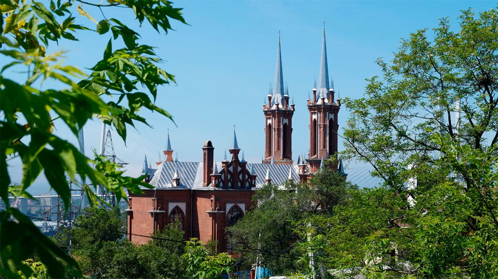 Кирха Святого Павла. Была построена в 1907-09 на средства компании «Кунст и Альберс» для нужд немецкой общины. Выбор красного кирпича не случайный – целью было добавить постройке сходство с архитектурой северной Германии. В советские времена по назначению не использовалась и во владения верующих вернулась лишь в 1997. К этому времени, немцев во Владивостоке уже не осталось, потому нынешняя паства состоит из местного русского населения. Еще тут проводятся концерты органной музыки.