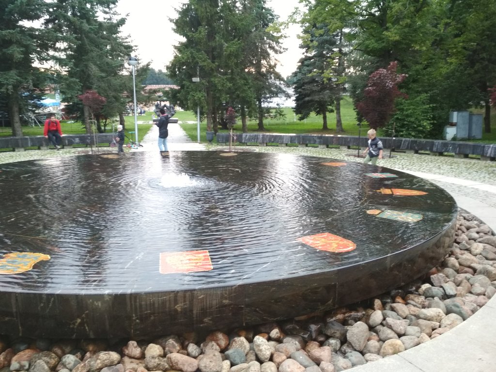 Выглядит весьма оригинально. Он сделан в форме мраморного стола переговоров, с которого медленно стекают струи воды. По бокам выложена мозаика в форме герба 16 стран-участниц Ганзы. А по краям установлены корабли, соединенные между собой парусами-кронами. Все это является символом единства и союза регионов.