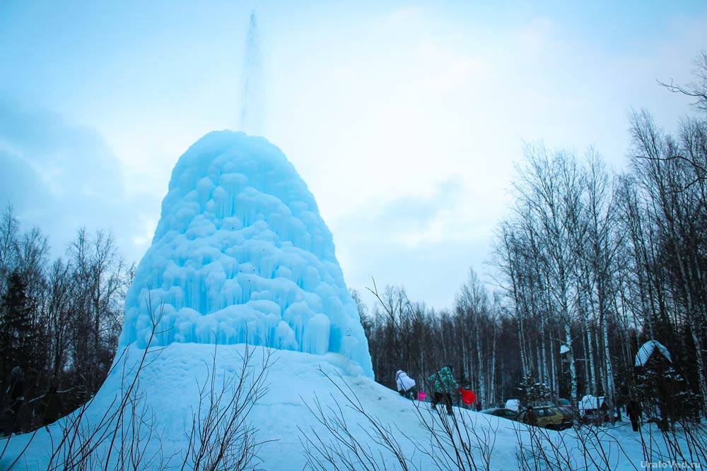 Бьющий из земли фонтан зимой образует причудливую «сосульку» из голубого льда, высотой до 10-15 метров. Интересно, что из года в год она выглядит по-разному, никогда не повторяя предыдущую форму. Внешний вид зависит от температуры и особенностей ветра. Находится на территории национального парка «Зюраткуль» в Челябинской области.