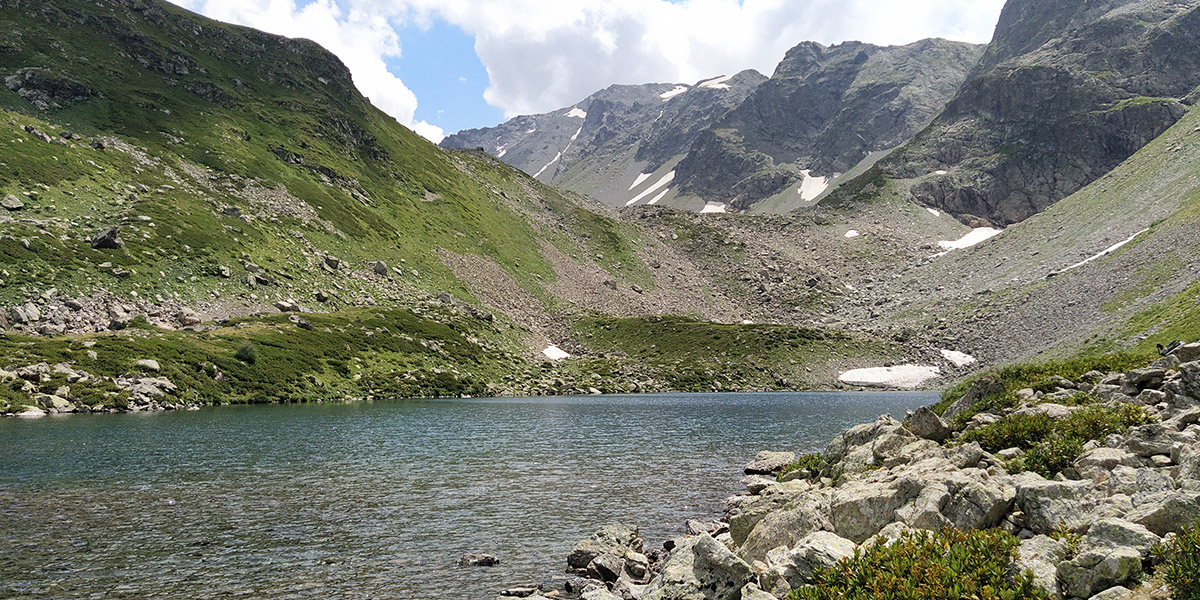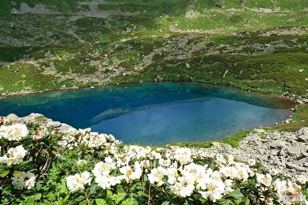 30 минут траверса и мы на месте. Озеро Сказка Кавказа, высота 2430 метров.
