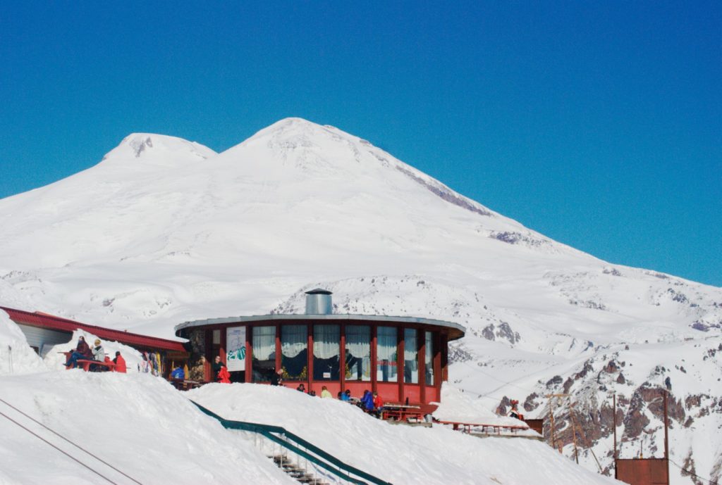 Тех, кто проходит его от самого подножия в долине Азау до вершины на 5 642 м, – единицы. Такое восхождение занимает несколько дней, а хочется же всё и сразу. Поэтому построили три подъёмника. За 1 500 рублей за полчала поднимаешься до отметки 3 850 м. При хорошей погоде, покачиваясь в кабинке подъёмника, можно любоваться долиной Азау и склонами Эльбруса. При пасмурной – тихо скрыться в облаках, чтобы вынырнуть уже за ними и восторженно выдохнуть.