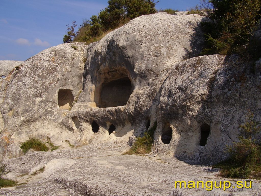 Наконец, манят гостей Крыма развалины святилищ. Например, церковь Трех всадников, высеченная в каменной гряде у цоколя крепости. У сакрального этого сооружения два входа, пространство между которыми освещалось из двух окон. В храме находятся две могилы – маленькая, должно быть, детская, и побольше. Возле них выемка для подсвечников и углубление с крестом.