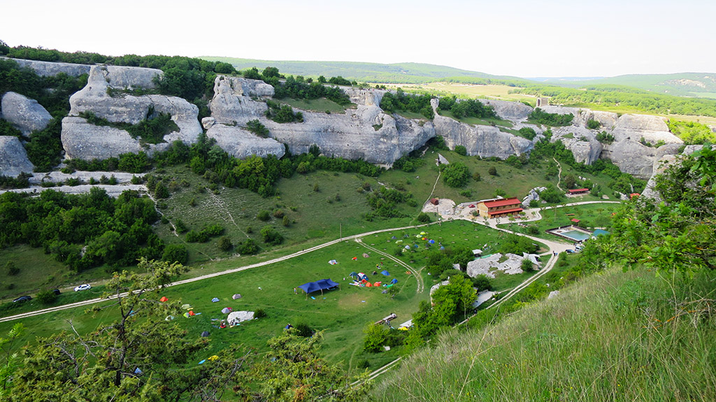 Далее два варианта: либо спуститься к селу Ходжа-Сала, забрать вещи и ехать в Бахчисарай на автобусе, уходящем в 14-20; либо, взяв вещи с собой утром, спуститься с обратной стороны через «Мышеловку» или в обход и прогуляться 6 километров до Терновки, где в 16-00 любезно воспользоваться автобусом на Севастополь.