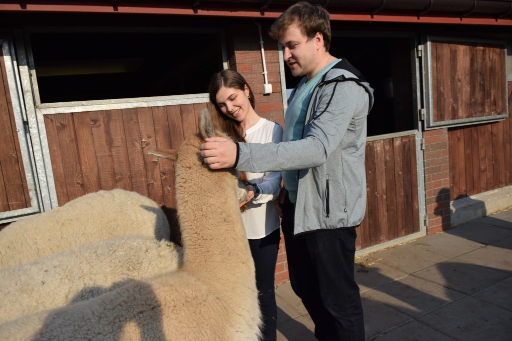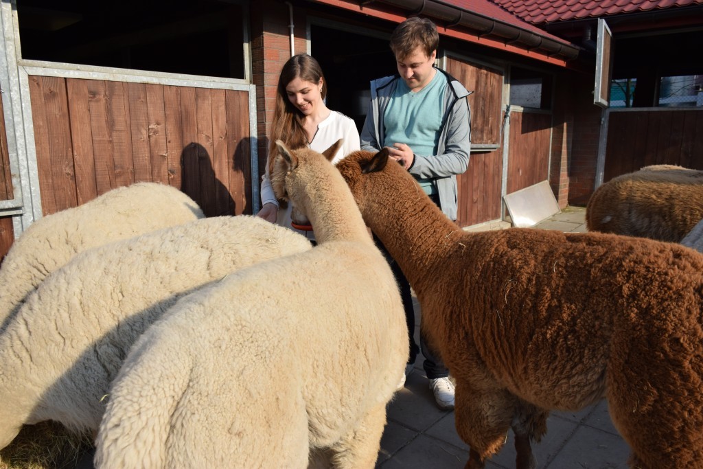 Экскурсия состоит из двух частей. Первая – посещение зоопарка, знакомство с животными. Кроме альпак есть взрослый верблюд, куры, кролики, коза. Гости общаются с животными, узнают о них много нового.