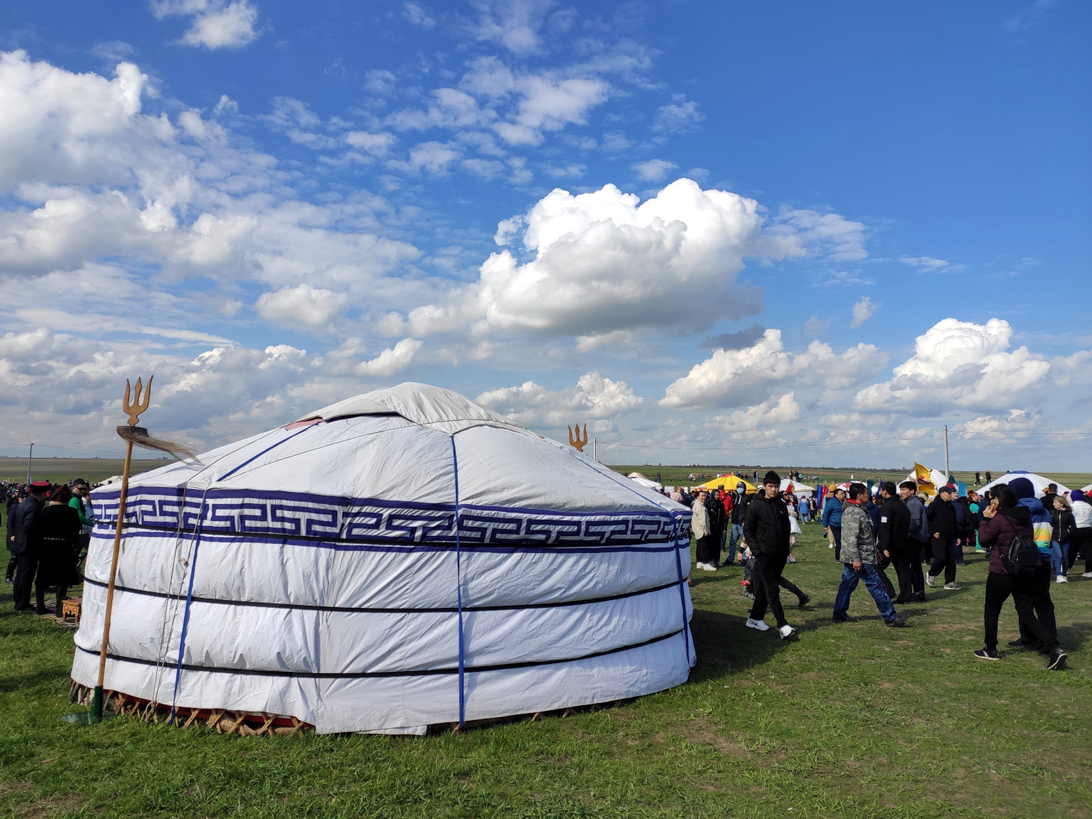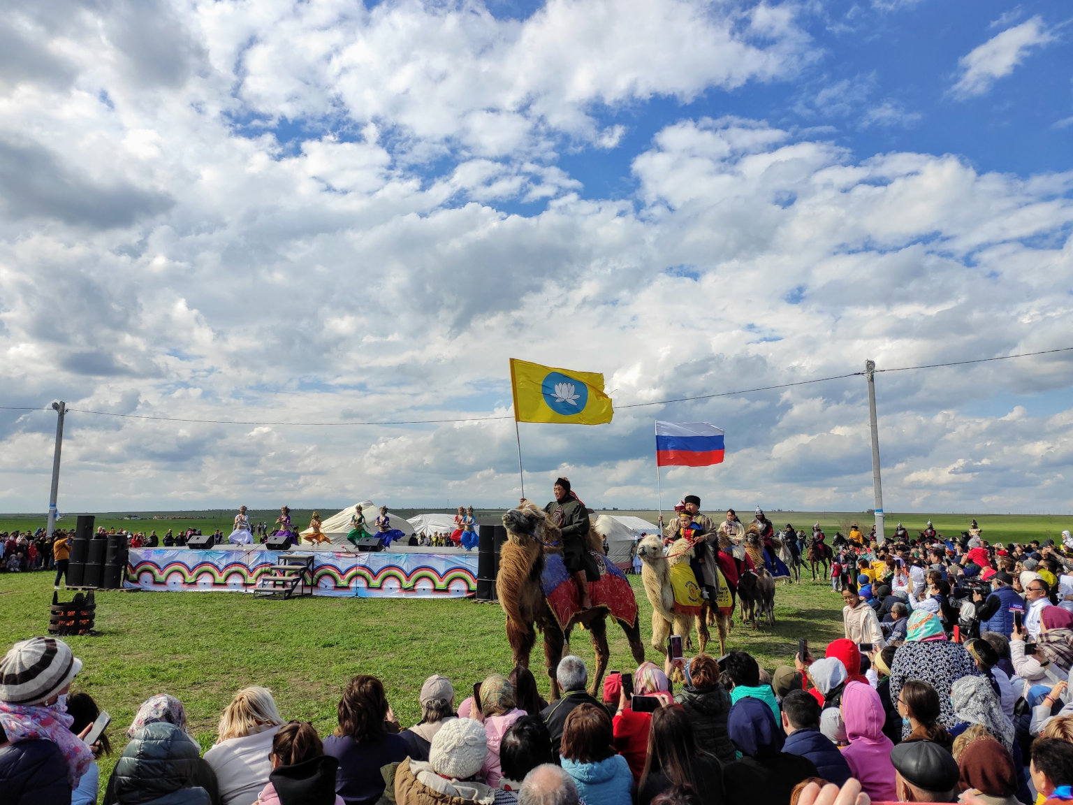 Площадка, где проводится фестиваль, тоже каждый раз новая. В этом году все мероприятия проходили в Целинном районе на территории экостоянки «Шатта» (20 км федеральной трассы Элиста-Волгоград). Прямо в степи возвели этнографическую стоянку-хотон — традиционное поселение калмыков-кочевников.