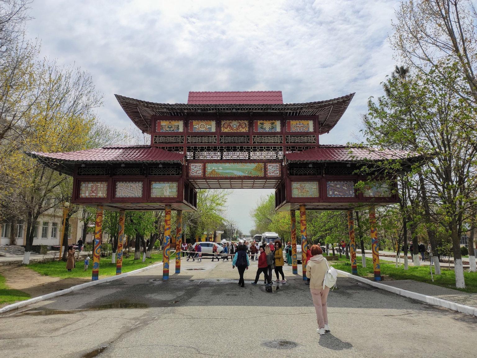 Золотые ворота «Алтн Босх» с 28 картинами, рассказывающими историю калмыцкого народа.