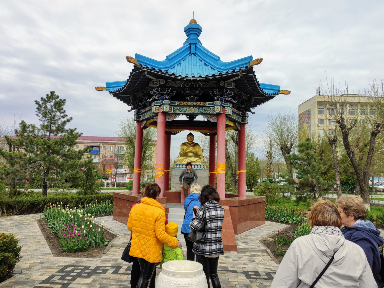 В день фестиваля тюльпанов мы обошли буддийские места в центре Элисты, слушая рассказы местного гида, исповедующего эту религию. Наша экскурсия была организована РЖД ТУР, но вы можете сами забронировать экскурсию в Элисте.