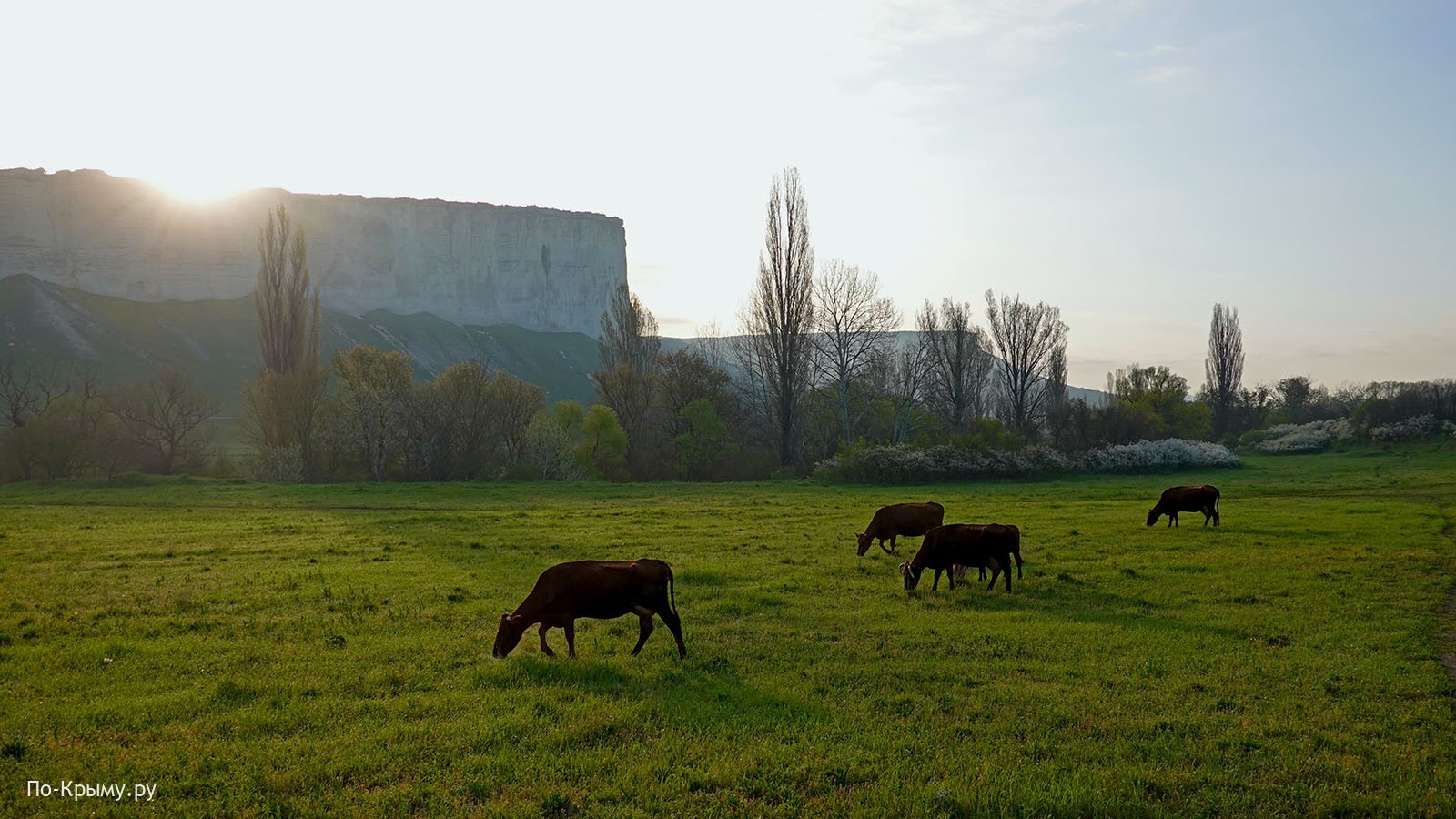 Мы решили, что стоит встретить утро прямо напротив «носа» Белой скалы и пошли к нему вдоль реки Биюк-Карасу. Тут была трава в росе, вкусно пахла цветущая алыча и хором пели соловьи.