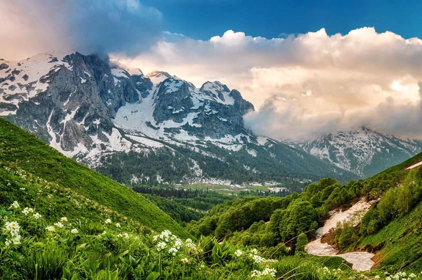 Ослепительные шапки снега — источники пресной воды. Отсюда берут начало крупнейшие реки Адыгеи и Краснодарского края, в том числе водоемы, питающие Черное море.