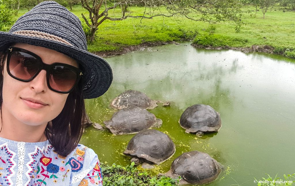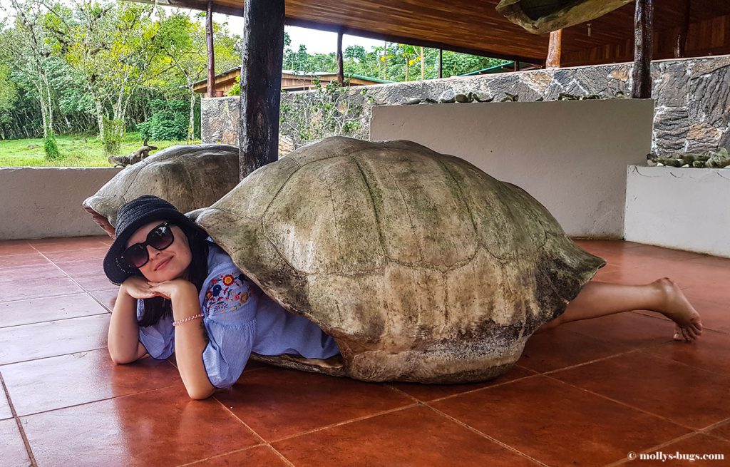 Если на станции Чарльза Дарвина вы увидите черепах в специальных вольерах, то на территории частного ранчо Rancho Primicias вы можете посмотреть этих животных в их естественной среде обитания. Но туда не так просто добраться. Доехать до территории ранчо можно только на такси, которое ездит в городе. Как только белый пикап остановиться, то вы ему говорите, что вам нужно ехать к черепахам на ранчо и водитель говорит стоимость. На общественном транспорте туда не добраться и пешком очень далеко идти. Стоимость такой поездки будет 35-40 долларов в обе стороны, то есть, таксист будет вас ждать, пока вы гуляете по ранчо и рассматриваете черепах. Если вы добавите еще 10-15 долларов, то ваша поездка будет включать в себя еще и лавовый тоннель, по которому можно будет пройти пешком от начала до конца. Мы решили, что за одну поездку посмотрим оба места, чтоб повторно не нанимать такси.
