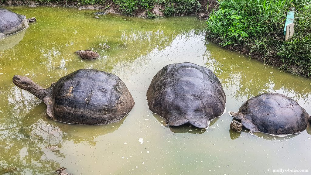 При входе на ранчо вам расскажут правила, что нельзя кормить, трогать животных и приближаться к ним ближе чем на 2 метра. В этом месте собрано около 100 черепах и все они находятся там по своему желанию – ворота ранчо никогда не закрываются. На этой территории много озер и свежей травы, поэтому животные с удовольствием там находятся. Гулять по ранчо было сплошным удовольствием, особенно наблюдая за семействами черепах, купающихся в лужах или прячущихся в кустах. Как только ты пытаешься приблизиться к какой-то из них, то они сразу прячутся и начинают громко шипеть, отпугивая тебя. Особенно весело было подходить к водоемам, в которых они лежат – тогда на тебя шипят все сразу, и возникает ощущение, что тебе угрожает какое-то большое и опасное существо. Ни в коем случае нельзя садиться верхом на них или что-то в этом духе – это расценивается как насилие над животными. Если запастись терпением, то можно получить классные кадры, учитывая, насколько черепахи медлительные. В целом, поездка нам очень понравилась.