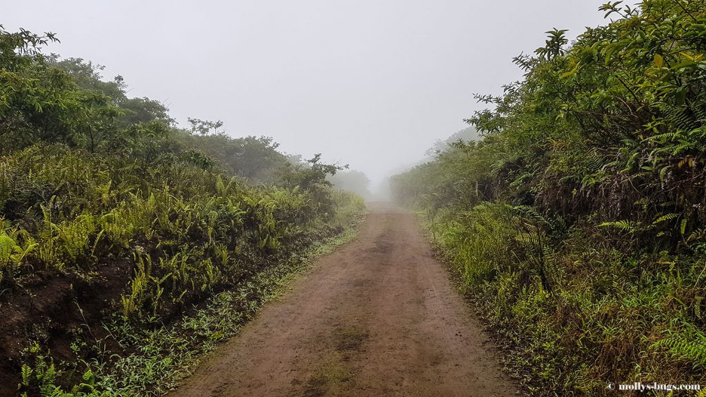 Путь на вулкан почти всегда окутан туманом в утреннее время