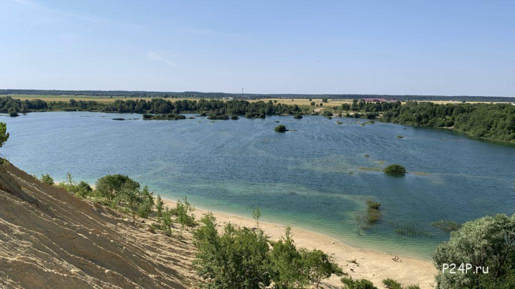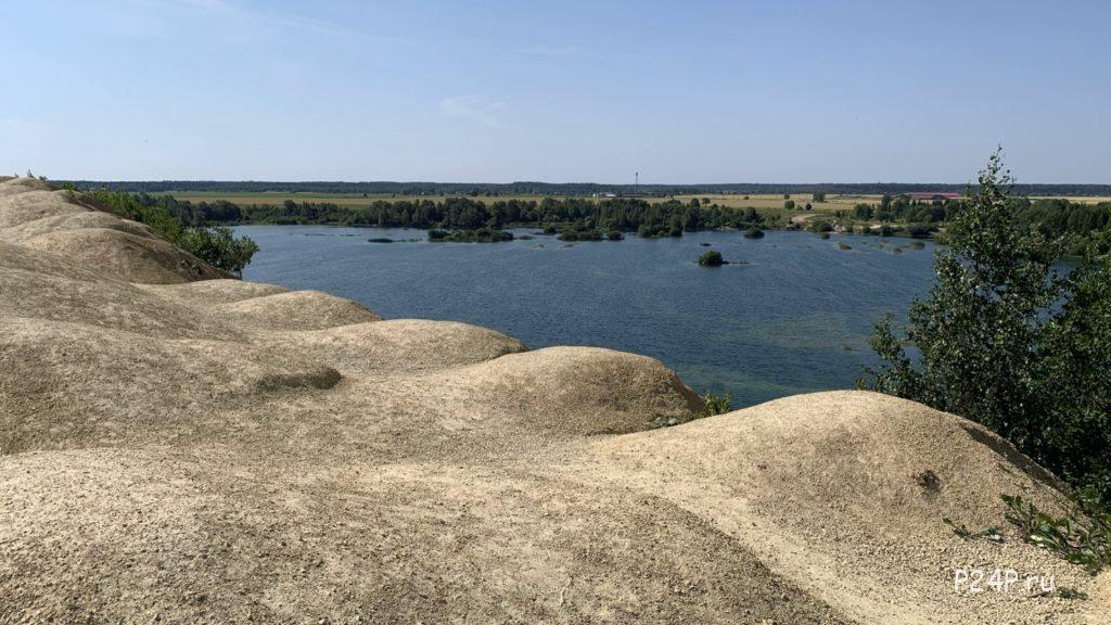 На другой стороне озера Борницкий карьер с лунными пейзажами