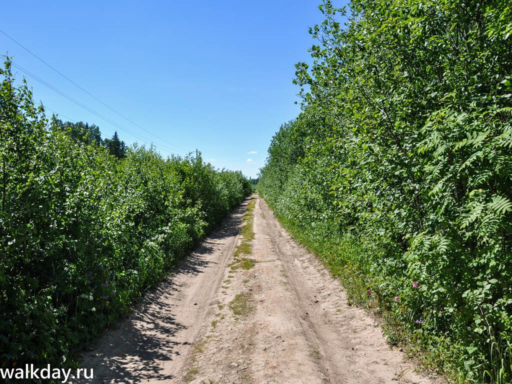 Нужно вернуться к развилке со шлагбаумом и проехать по Центральной улице дальше, за шлагбаум. Проезжаете все садоводство прямо до конца. За ним будет лесок. Едете по нему до небольшого пустыря, от которого расходится дорога. Здесь оставляете машину и дальше идете направо пешком.