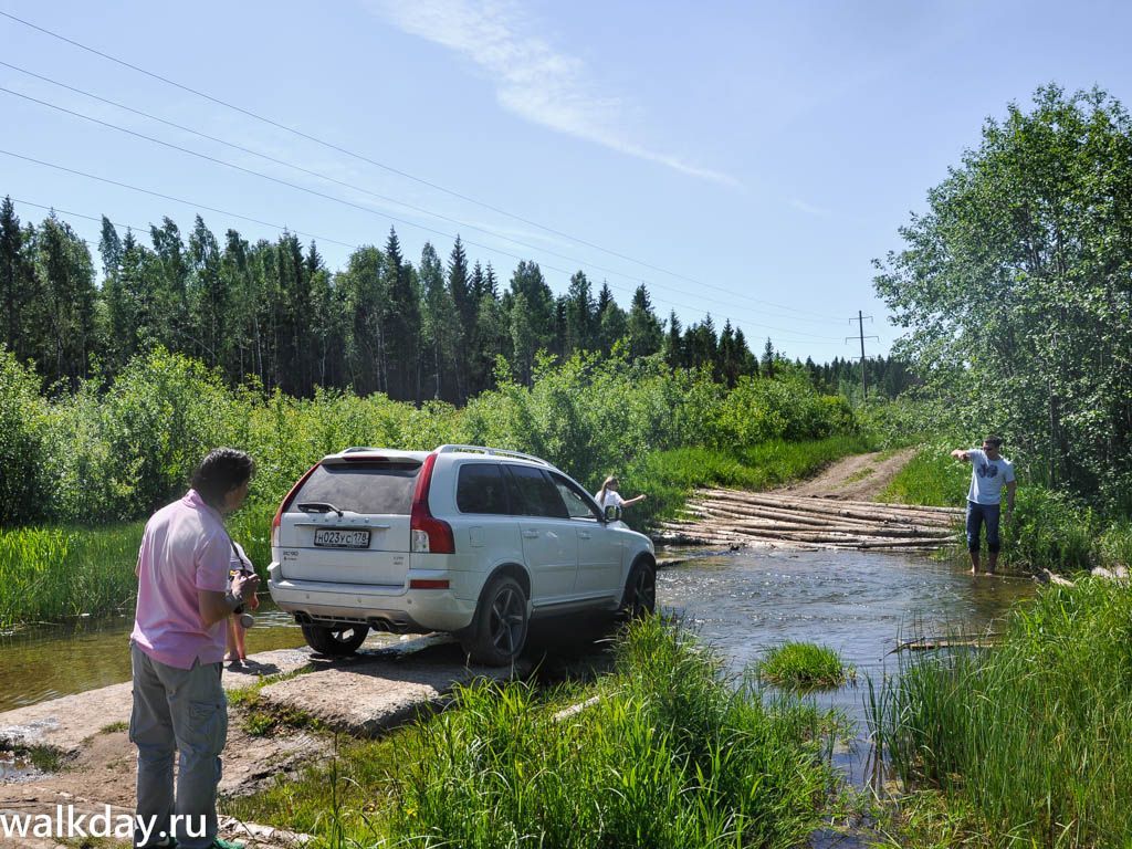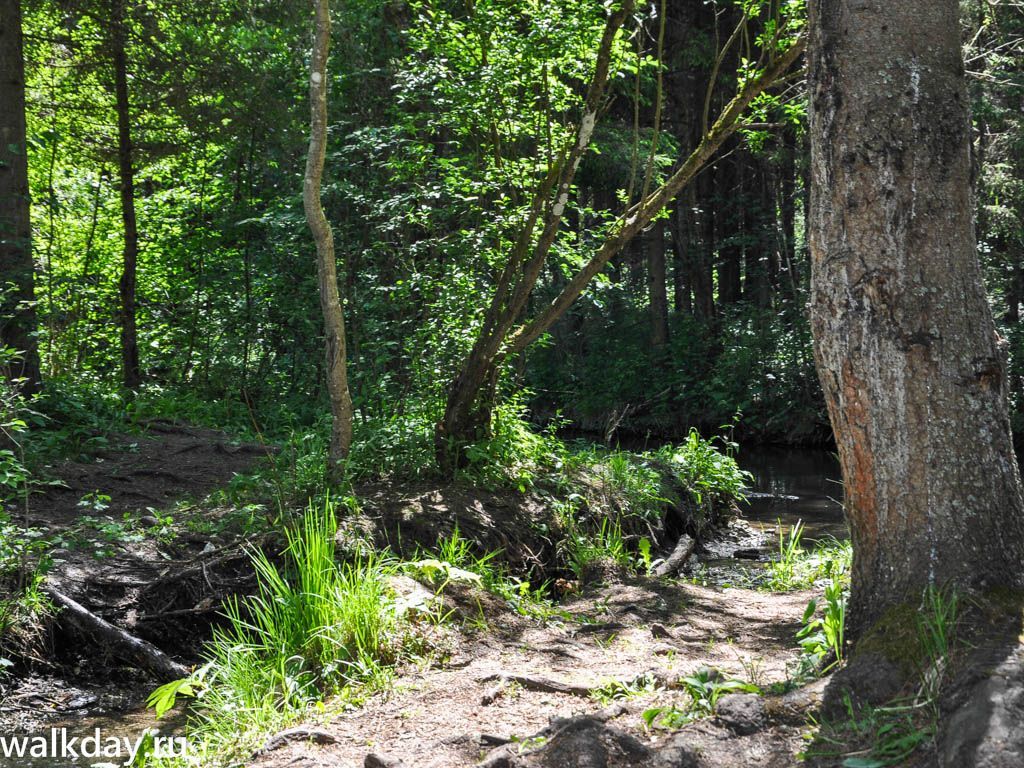 Следующим ориентиром будет река и бревенчатый настил через нее. Не доходя до нее несколько метров, нужно свернуть направо в лес.
