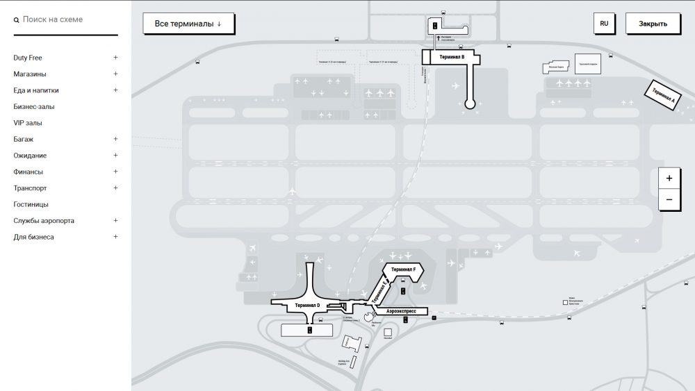 Схема расположения терминалов аэропорта Шереметьево можно посмотреть ниже.