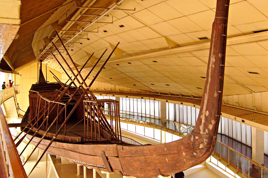 Солнечная лодка – одна из поздних находок, обнаруженная в 1954 году рядом с пирамидой Хеопса. Большая ладья (больше 40 м в длину, более 5,5 м в ширину) в разобранном виде была погребена в подземной камере у гробницы фараона. Археологи смогли отреставрировать и собрать лодку, после чего она была помещена под купол и открыта для посещения.