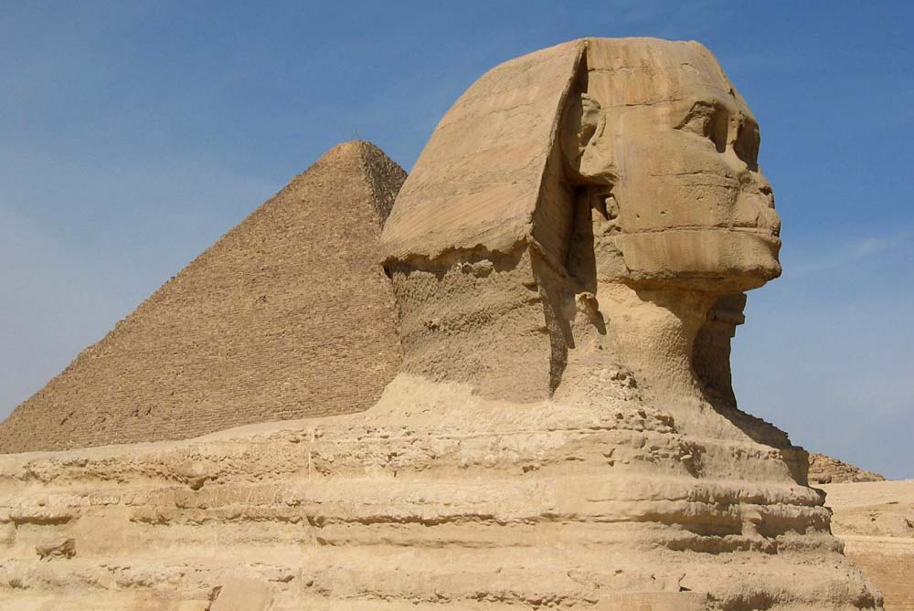 Сфинкс — тоже рекордсмен. Это самая большая монолитная статуя в мире (длина 73 метра, высота 20 метров). На данный момент с помощью современного оборудования опровергнуты все предыдущие версии его происхождение. Абсолютно точно Сфинкс был высечен из камня во времена фараона Хеопса.