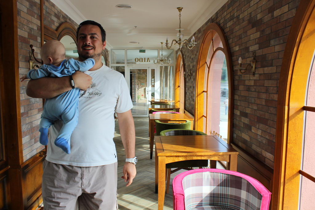 Женя нашёл этот ресторан, по отзывам в интернете и сказал, что многие его хвалят, и туда стоит зайти покушать. У нас так и получилось, оказались рядом и были голодные. Прошли туда без проблем, нашли укромный уголок, чтобы еще и сыночка покормить. Ведь он у нас на грудном вскармливании.