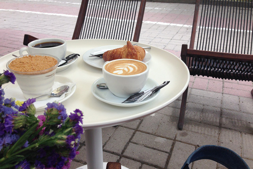 Люблю «Сеттерс» в любое время года, но летом особенно. На фото — капучино, фильтр-кофе, классический круассан и «Рыжик»
