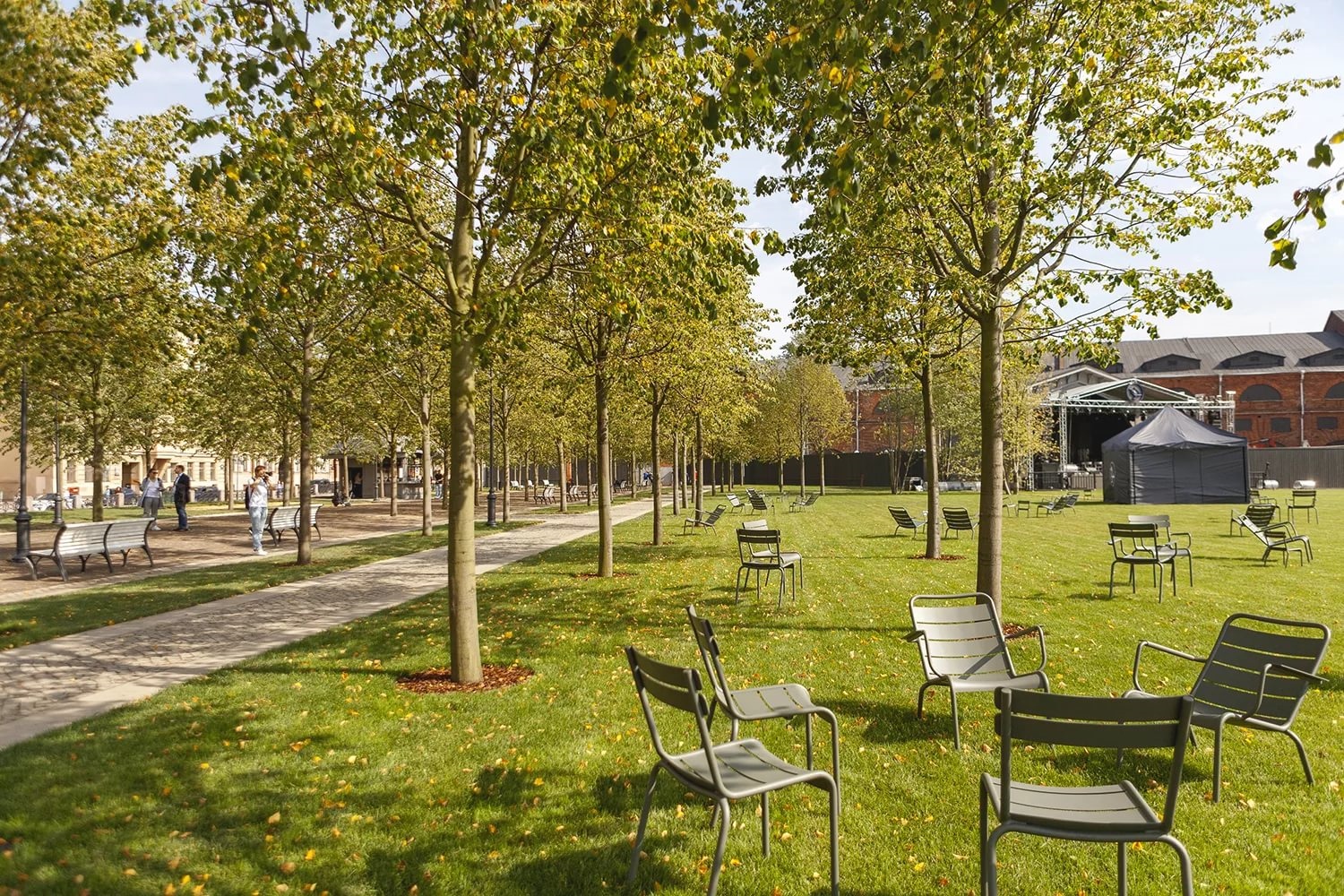 Особой популярностью пользуется зеленая зона для отдыха, где можно посидеть на стульчиках или прямо на газоне, наслаждаясь теплой погодой начала осени. На территории есть травяной сад, желтые краски украшают также деревья на аллеях.