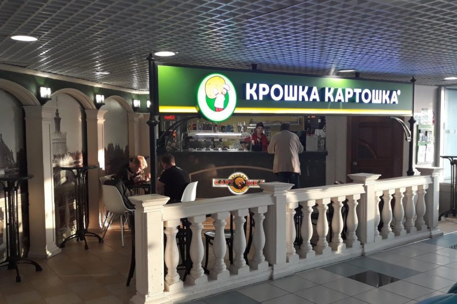 - Ресторан «Крошка-картошка» – горячие блюда, салаты, закуски, десерты и напитки. Цены низкие.