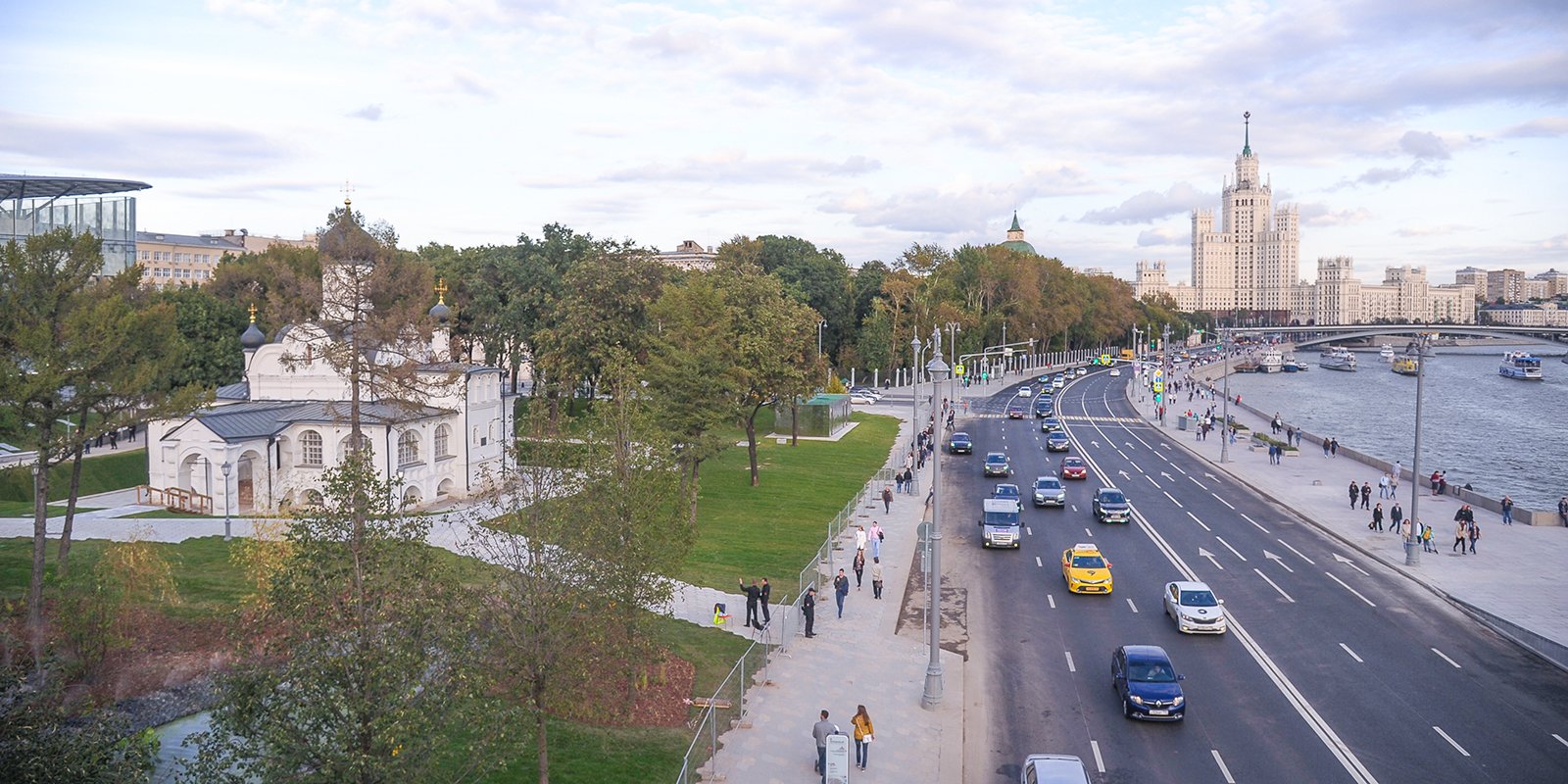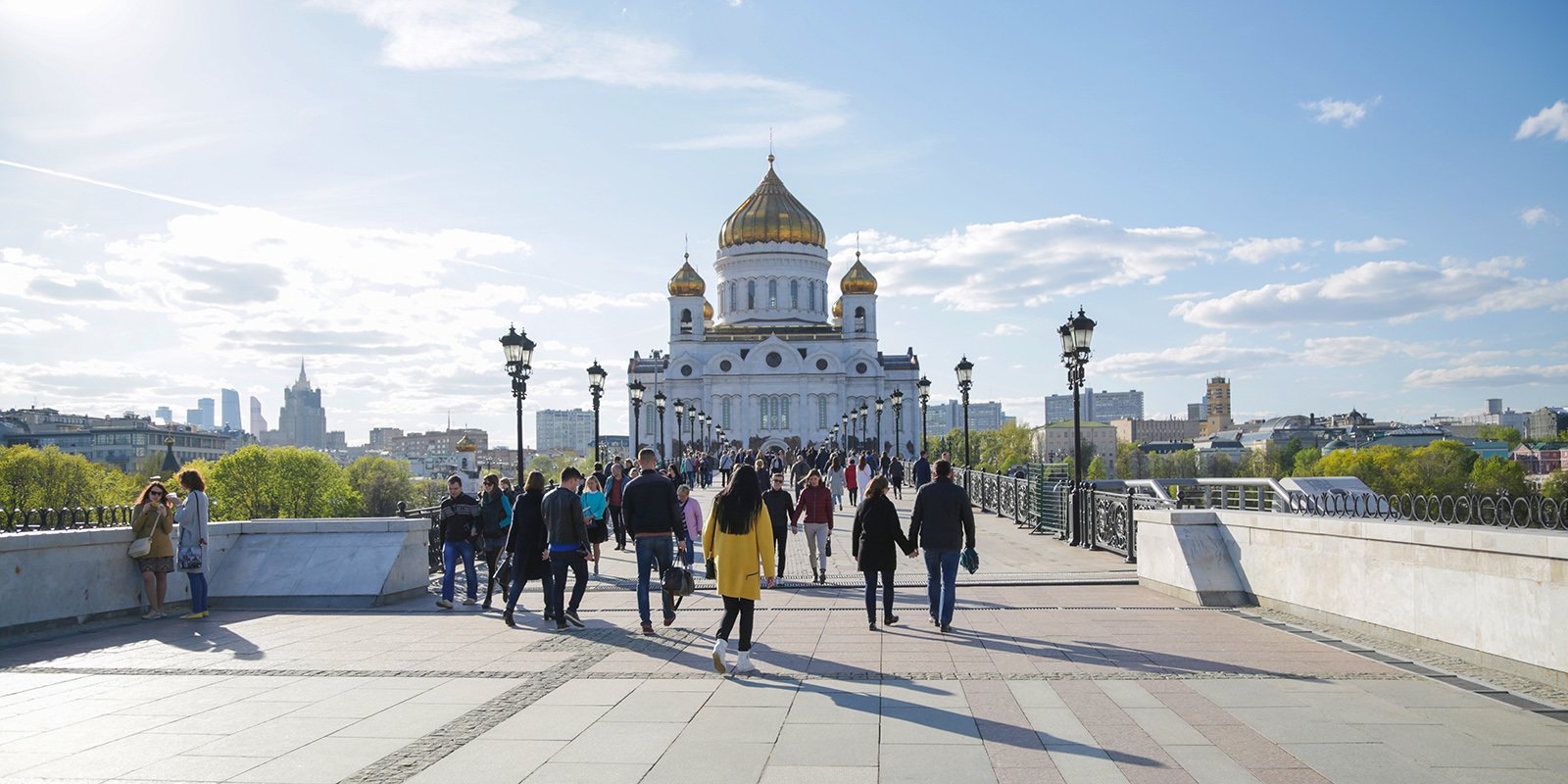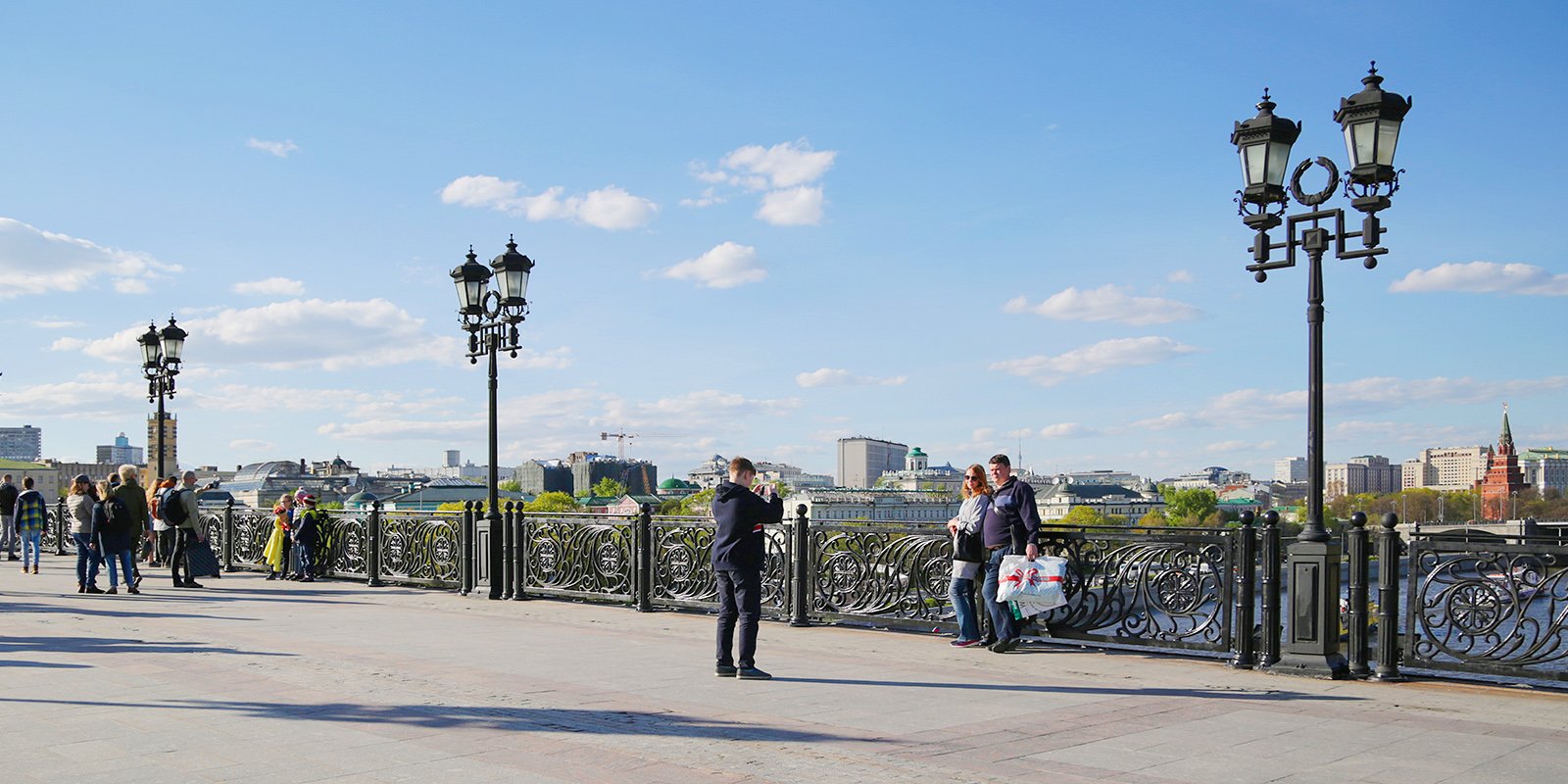 Одна из лучших панорам открывается с Патриаршего моста. Пешеходный маршрут от храма Христа Спасителя до Замоскворечья пролегает по мосту между Пречистенской и Берсеневской набережными. Лучше всего здесь гулять вечером, когда в реке тонет свет сотен фонарей. А вообще мост открыт круглый год в любое время суток.