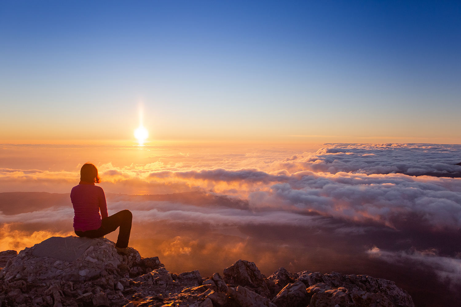Человек идет весь день по горам, несет на себе тяжелый груз. Он садится, отдыхает, ставит свой дом-палатку, готовит ужин. Сидит у костра, общается с друзьями, завтра его ждет новый переход и новые впечатления. Можно открыть глаза, умыться и спокойно заниматься туристическим бытом. А можно отправиться на вершину за рассветом, если стоянка позволяет сделать такой шаг. Самые крутые рассветы и закаты бывают после грозы, в морозную-преморозную или ветреную погоду, и теплой осенью, когда под ногами появляется перина облаков. А если повезет — в любое другое время. Летом приходится вставать очень рано, чтобы к 5 утра быть готовым, заварить кофе и созерцать рождение нового дня. Зимой можно хорошо выспаться и не спешить выскакивать из палатки в такую рань.