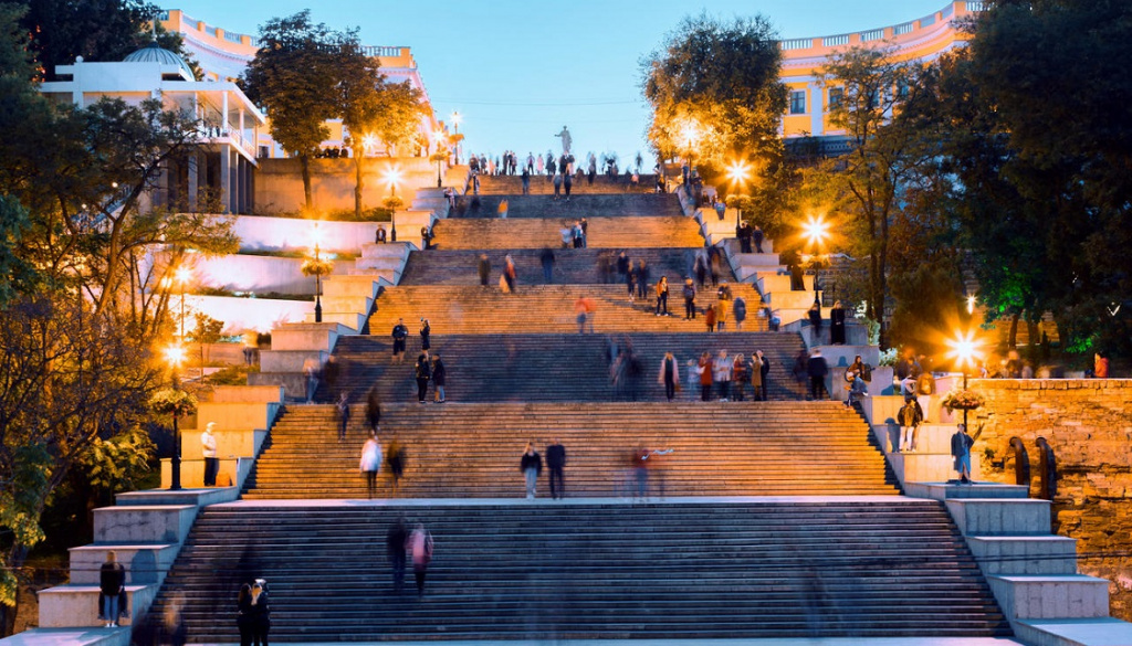 Потемкинская лестница – визитная карточка столицы юмора. С нее открывается потрясающий вид на море и порт. К тому же, лестница расположена в пяти минутах ходьбы от улицы Дерибасовской – вопроса, куда пойти в Одессе утром после рассвета, не возникнет.