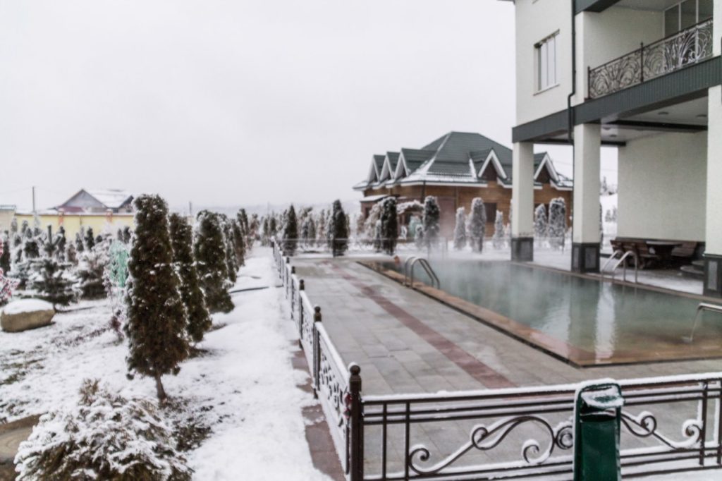 - Большой термальный бассейн с массажем и горкой «Двор №3». Во дворе есть крытые и открытые раздевалки. Температура терм равняется +45 градусов, глубина – 1,2 метра, площадь 186 кв.м.