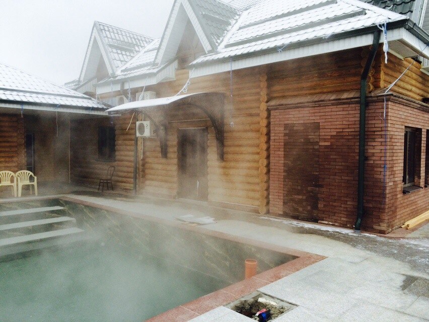 Температура воды в бассейнах разная. Вода в них и горячая, и теплая, и даже холодная для принятия контрастных ванн. После того, как человек разогреется в горячей воде, он быстро перебирается в ледяной бассейн, после чего вновь отправляется в горячий водоем. Подобные стрессовые купания отлично работают на укрепление защитных функций организма, закаляя его.