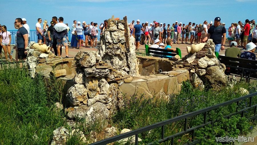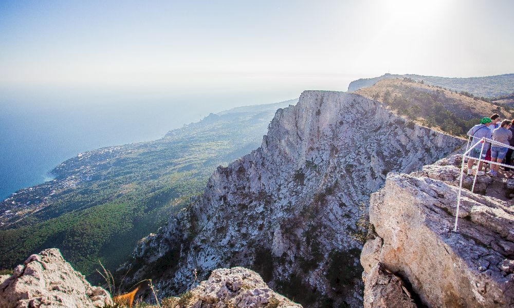 Высоту Ай-Петри легко запомнить – 1234 метра над уровнем моря, звучит, как начало детской считалочки. Поднявшись к месту осмотра, туристы смогут увидеть чудесную панораму южного побережья: бескрайняя зелень, игрушечные домики посёлков и море, которое постепенно сливается с небом. Неподалёку от площадки хорошо видны знаменитые зубцы, образованные отвесными пиками.