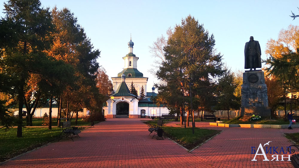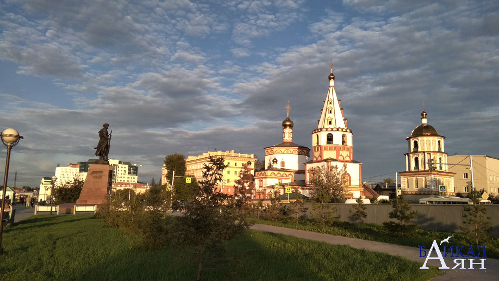 Памятник основателю Иркутска Якову Похабову и Собор Богоявления