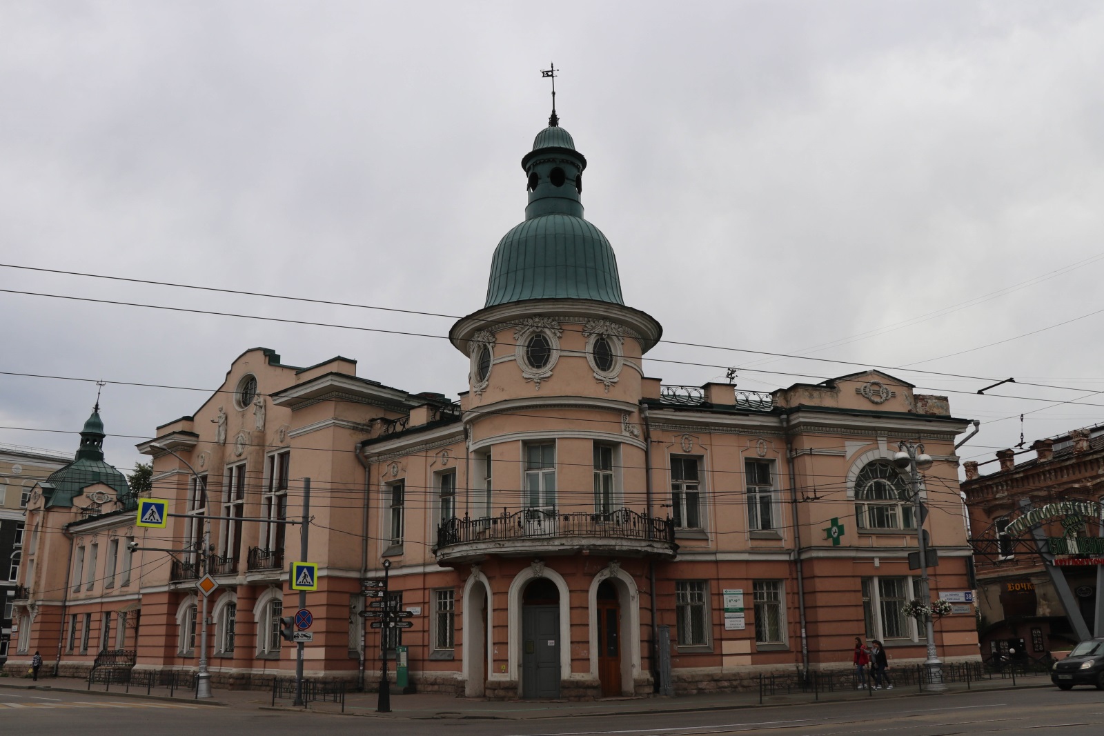 Здание строилось специально для отделение Русско-азиатского банка. После революции все международные связи были прекращены, а дом заняло правительство Колчака. Теперь это районная поликлиника.