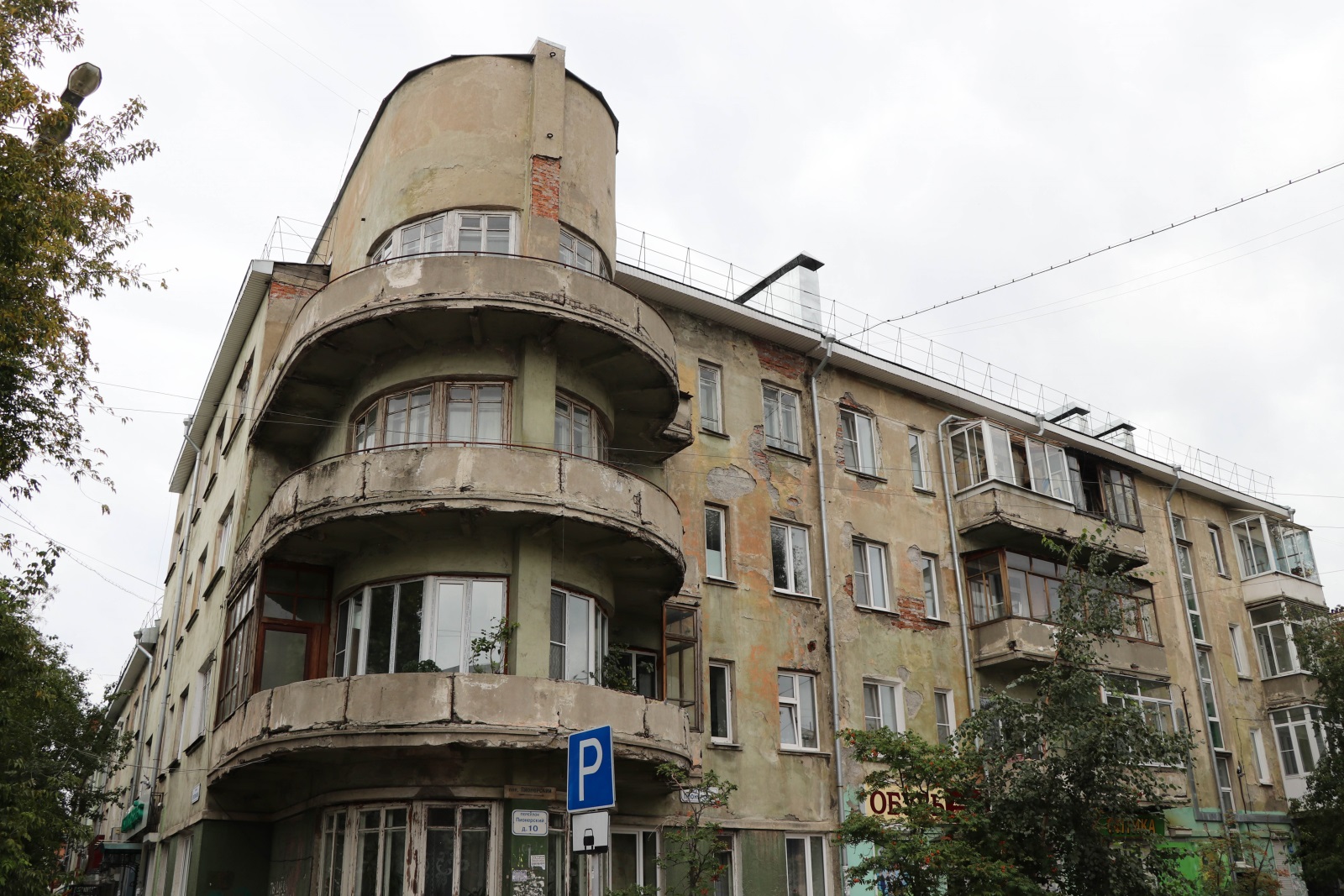 Цилиндрический фасад, ленточные окна и сплошные балконы делают здание отличным примером конструктивизма. Главный в то время архитектор города решил последовать мировым тенденциям и построить жилой дом для сотрудников НКВД именно в этом стиле. Спустя несколько лет архитектор был репрессирован как шпион и умер в тюрьме.