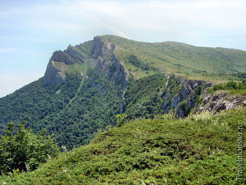 Роман-Кош – это самая высокая точка крымских гор. С ее верхушки видны лес заповедника, Симферополь, Бахчисарай и море, но совсем-совсем вдали, потому что гора находится на самом севере яйлы. У вершины нет остроконечного пика, она выглядит как большой холм на плато высоко в горах. Его единственное отличие от соседей – крест, установленный на самом верху.