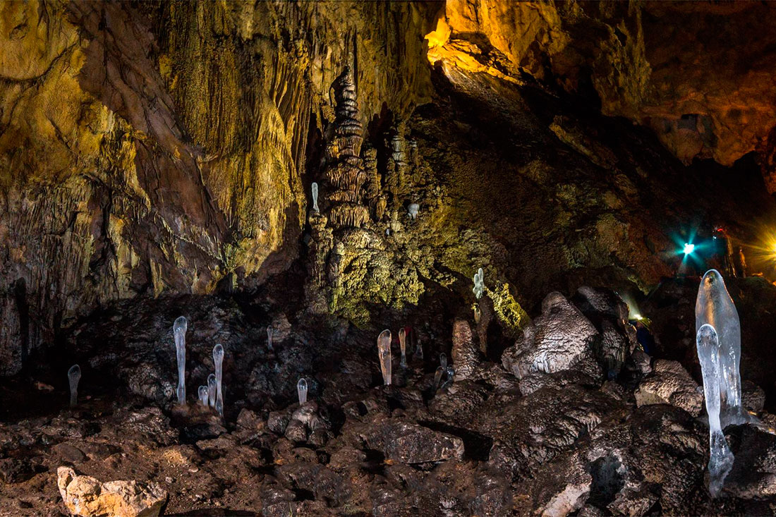 Все стены галерей и гротов – черного цвета. Из-за этого свет практически не отражается, и в пещере сложно ориентироваться даже с фонариком. Самое загадочное, что у многих побывавших здесь людей появляются схожие галлюцинации. Якобы видят человека с пронзительным взглядом и в головном уборе с рогами, по виду – шамана. Также у людей наблюдается нервозность, тревожность и панические атаки. Возможно, причина в химических соединениях, присутствующих в пещерном воздухе.