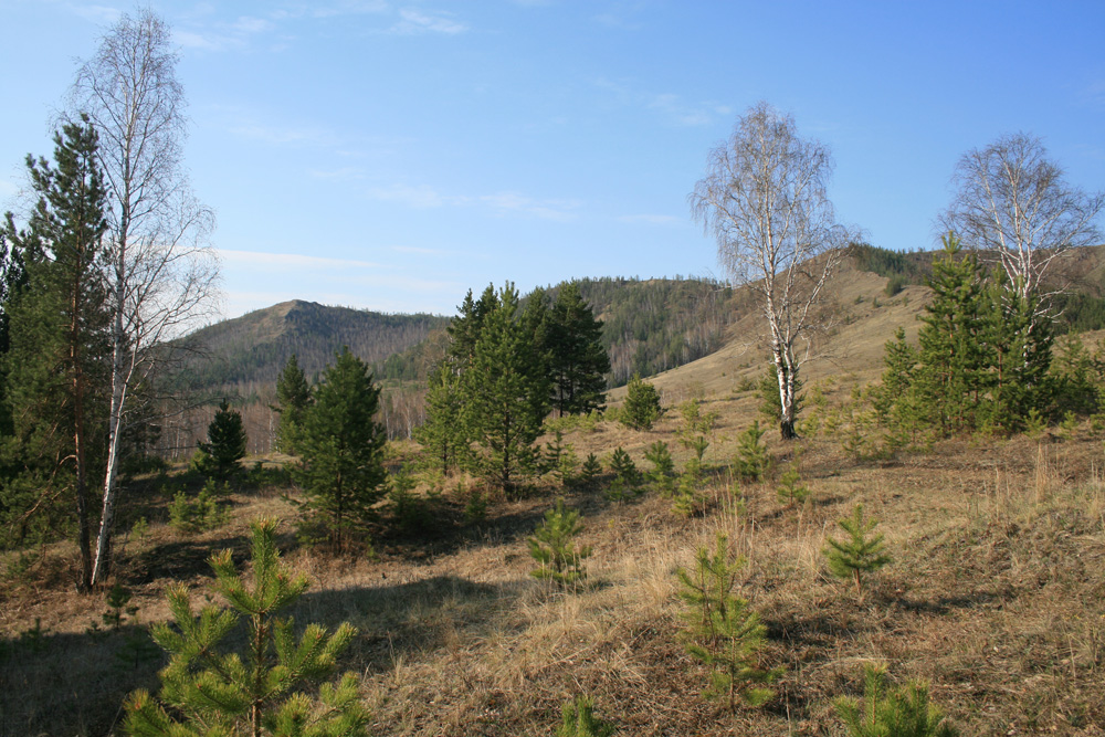 Выходим из леса сразу к подножию. Перепад высот небольшой: метров 250. Издалека кажется, что хребет безжизненно голый, но на самом деле это не так. Склоны покрыты сухой травой, изредка лиственницами и березами. Ветер разносит сладковатый запах какой-то травы, типа Чабреца, и дает ощущение степи. Хотя самого Чабреца мы там и не видели. Южная часть Нурали характерна островерхими гребнями-отрогами. Там практически нет плато, и когда идешь по гребню, то видишь оба склона одновременно, динамично меняющимися у тебя под ногами. Интересное ощущение!