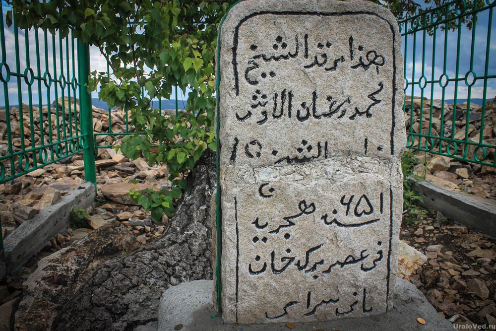 Эта гора – знаковое место для мусульман. На её вершине расположены три священные могилы. Главная из них отмечена плитой с арабской вязью, её окружает забор с полумесяцами. Данную плиту установил религиозный деятель Зайнулла Расулев в 1905 году взамен расколовшейся старой, скопировав текст с первой плиты. Впрочем, сейчас плита вновь стоит расколотой.