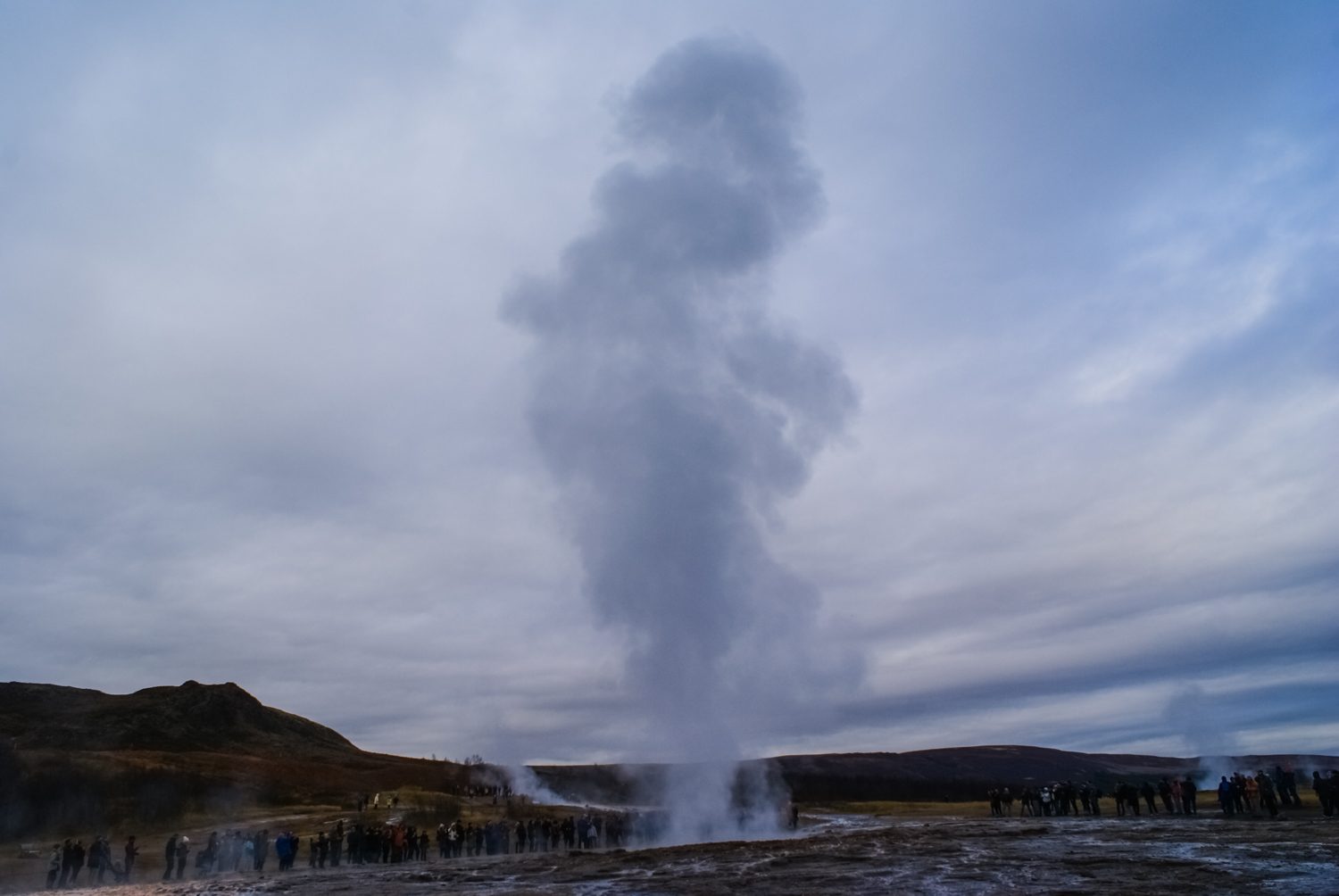 Среди тех, кто не берет напрокат автомобиль, популярностью пользуется экскурсия по «Золотому кольцу»: водопад Gullfoss, гейзеры и парк Þingvellir. Мы и сами в такую ездили, когда оказались в Исландии впервые и жили в Рейкьявике. Обычно такой тур проходит за один день: рано утром из отеля отвезли к месту сбора, а вечером вернули туда же. Если будете отдыхать в Исландии зимой, помните, что темнеет очень рано. В ноябре мы застали в парке (последняя точка экскурсии) закат. Плюс этих мест в том, что они дают прекрасное представление о стране: гигантский водопад, вырывающиеся из-под земли гейзеры и разлом в тектонических плитах – согласитесь, колоритно? Минус – в популярности, туристов здесь очень много.