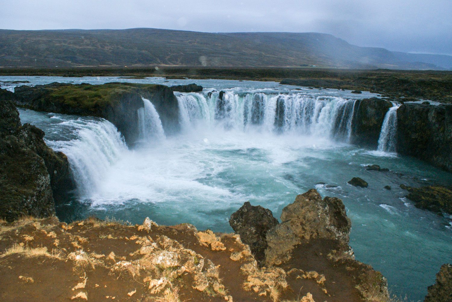 На севере есть большие фьорды, лавовые поля, один из самых известных водопадов Исландии – Goðafoss, красивый город Акюрейри и озеро Миватн. Озеро большое, так что если погода позволяет, вокруг него можно кататься хоть целый день: пейзажи разнообразны, а можно еще и пещеры неподалеку поискать…