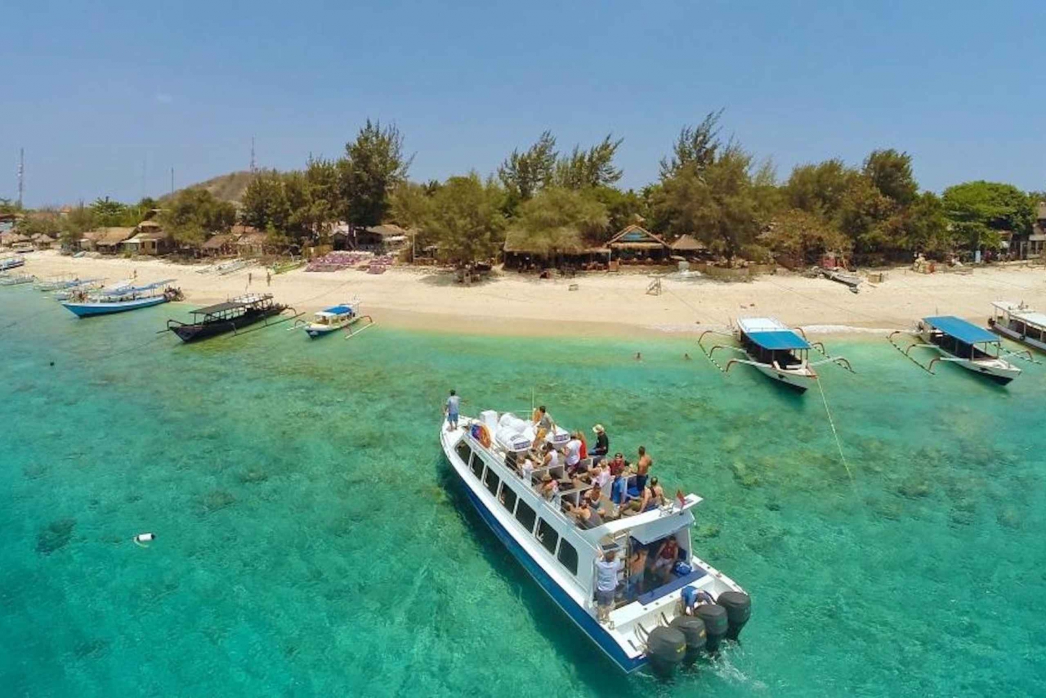 - Чаще всего перевозчики обеспечивает не только транспортировку на острова Гили на скоростном катере, но и бесплатный трансфер до порта в Бали. В таком случае они забирают клиентов из отеля и доставляют их в порт в указанное время отправления.