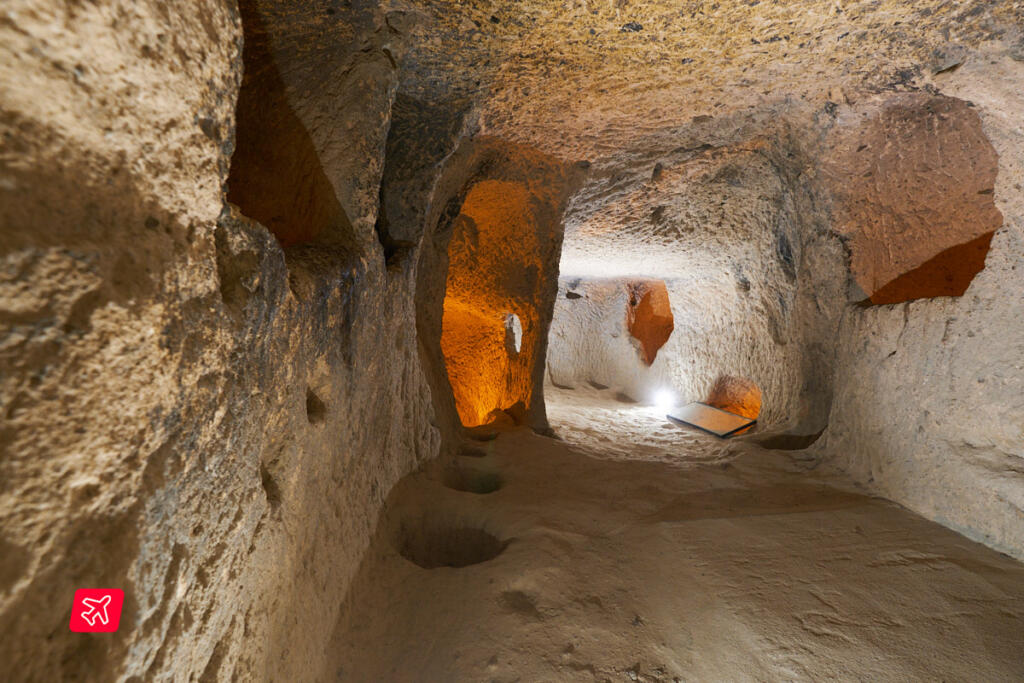 Еще одна достопримечательность Каппадокии – многочисленные подземные города. Известно около 200 таких поселений, но изучено пока не больше 30. Все они состоят из большого количества помещений, соединенных туннелями и коридорами. Здесь есть улицы и жилые помещения, хранилища и стойла для скота, кухни и винодельни, церкви и кладбища. Некоторые города уходят вниз на 20 этажей. Точных данных, кто и когда их начал строить, пока не существует. Самые известные поселения – Деринкую и Каймаклы.