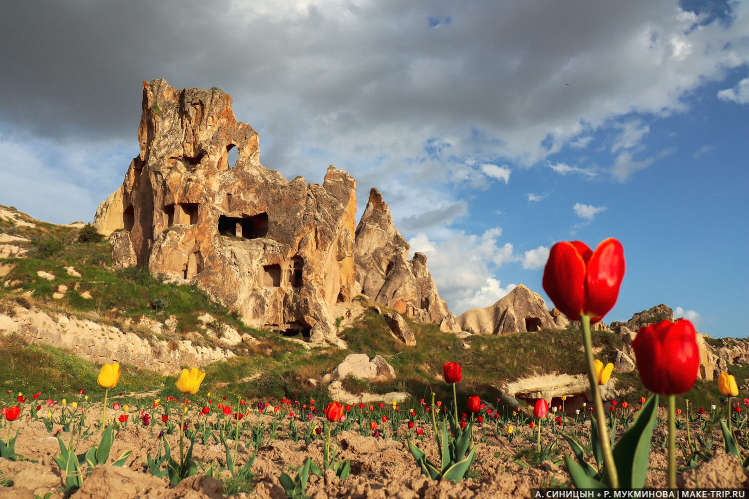 В мае Каппадокия зеленая, цветущая и романтическая. Особенно много цветущих яблонь в долинах.