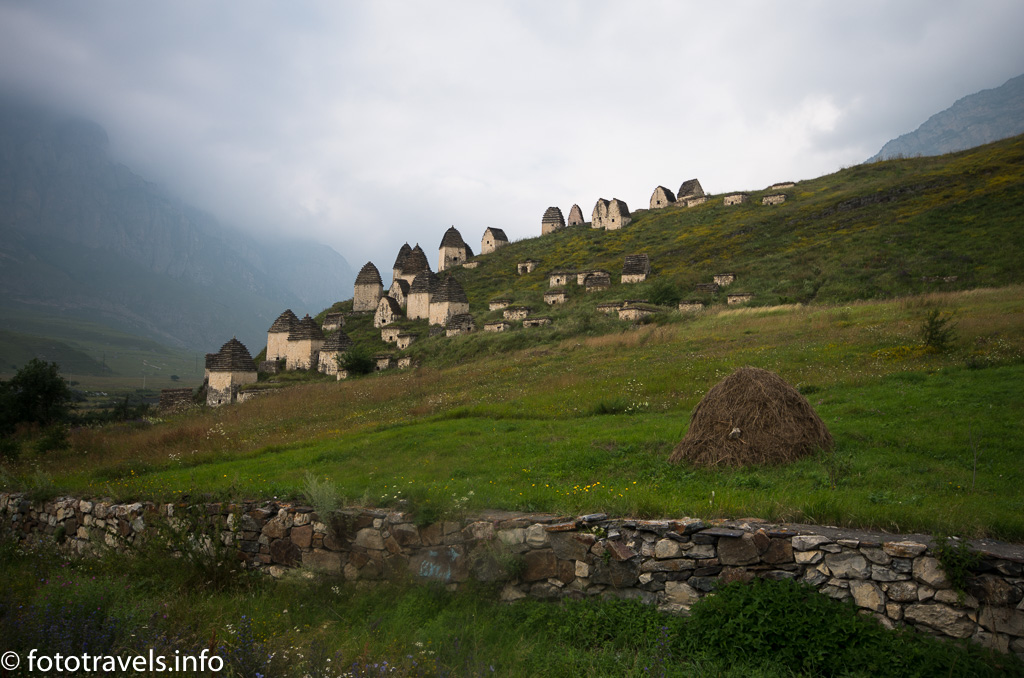 Город Мертвых в Даргавсе — это древнее захоронение местных горцев… Очень богатых горцев, поскольку, судя по тому, что все источники хором называют стоимость обтески одного камня в одну овцу, позволить себе такой склеп могли лишь богатые семьи. Над Городом Мертвых возвышается сторожевая Башня Аликовых.