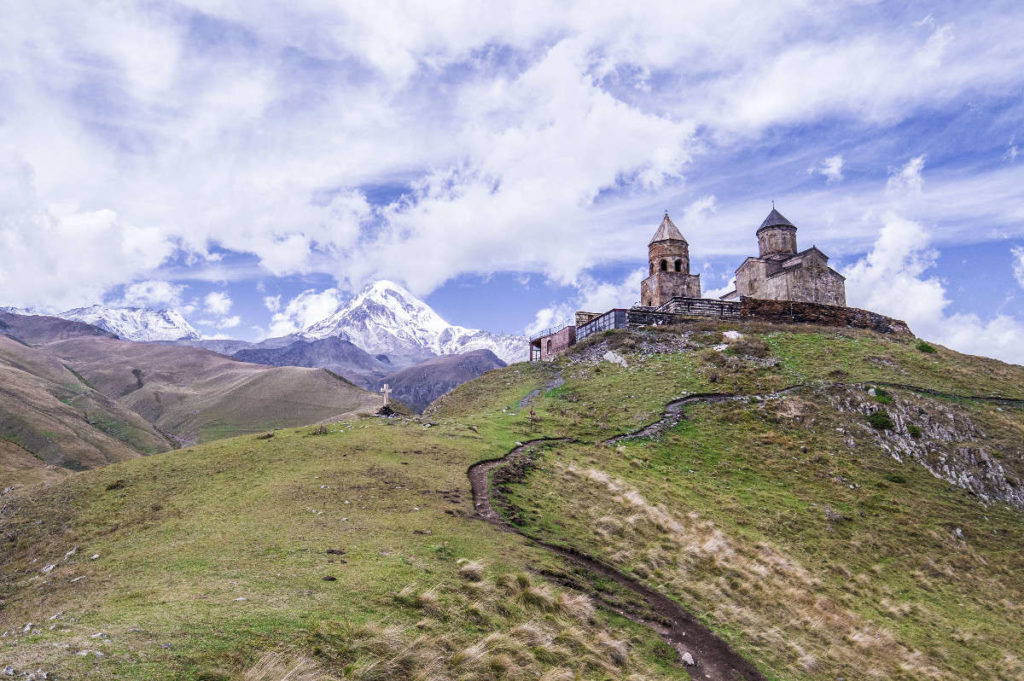 Казбеги также богат важными памятниками культуры. которая делает великолепный вид на ледник Мкинварцвери т.е. ледяной пик, особенным и незабываемым.