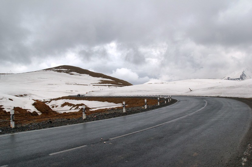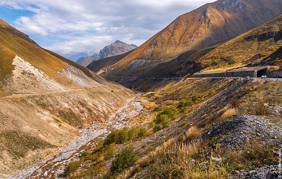 После Коби Терек остается в стороне. Дорога теперь идет вдоль реки Байдара, правого притока Терека, и поднимается все выше — к перевалу через Большой Кавказский хребет.