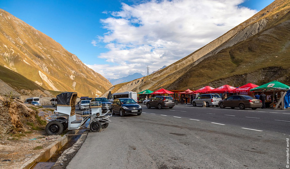 Если частное такси не входит в ваш бюджет, то совместное — хорошая альтернатива маршрутке. Общие такси предназначены для туристов, поэтому останавливайтесь как у крепости Ананури, так и у смотровой площадки Гудаури. Если вы не хотите останавливаться здесь, уточните у водителя возможна ли прямая поездка.